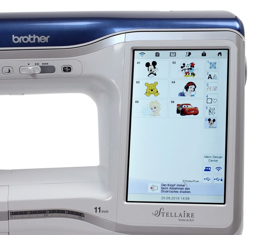 Die Brother Stellaire Innov-is XJ1 Nähmaschine wurde speziell für alle entwickelt, deren Kreativität keine Grenzen kennt und die jedes Mal ein professionelles Finish verlangen! Von Quilts über Gardinen und Brautkleider bis hin zu unhandlichen Mänteln, die Stellaire Innov-is XJ1 bietet immer Platz zum schnellen und bequemen Arbeiten. In My Design Center zeichnen Sie direkt auf die große Zeichenfläche des Touchscreens der Stellaire, oder Sie importieren über den eingebauten USB-Anschluss eigene JPEG-Dateien zum Umwandeln in Stichdaten. Die Näh- und Stickmaschine Stellaire Innov-is XJ1 bietet einen LED-Nadelpointer, Laserpräzision, perfekte Positionierung und schnellere Stickgeschwindigkeiten bis 1050 S/min.